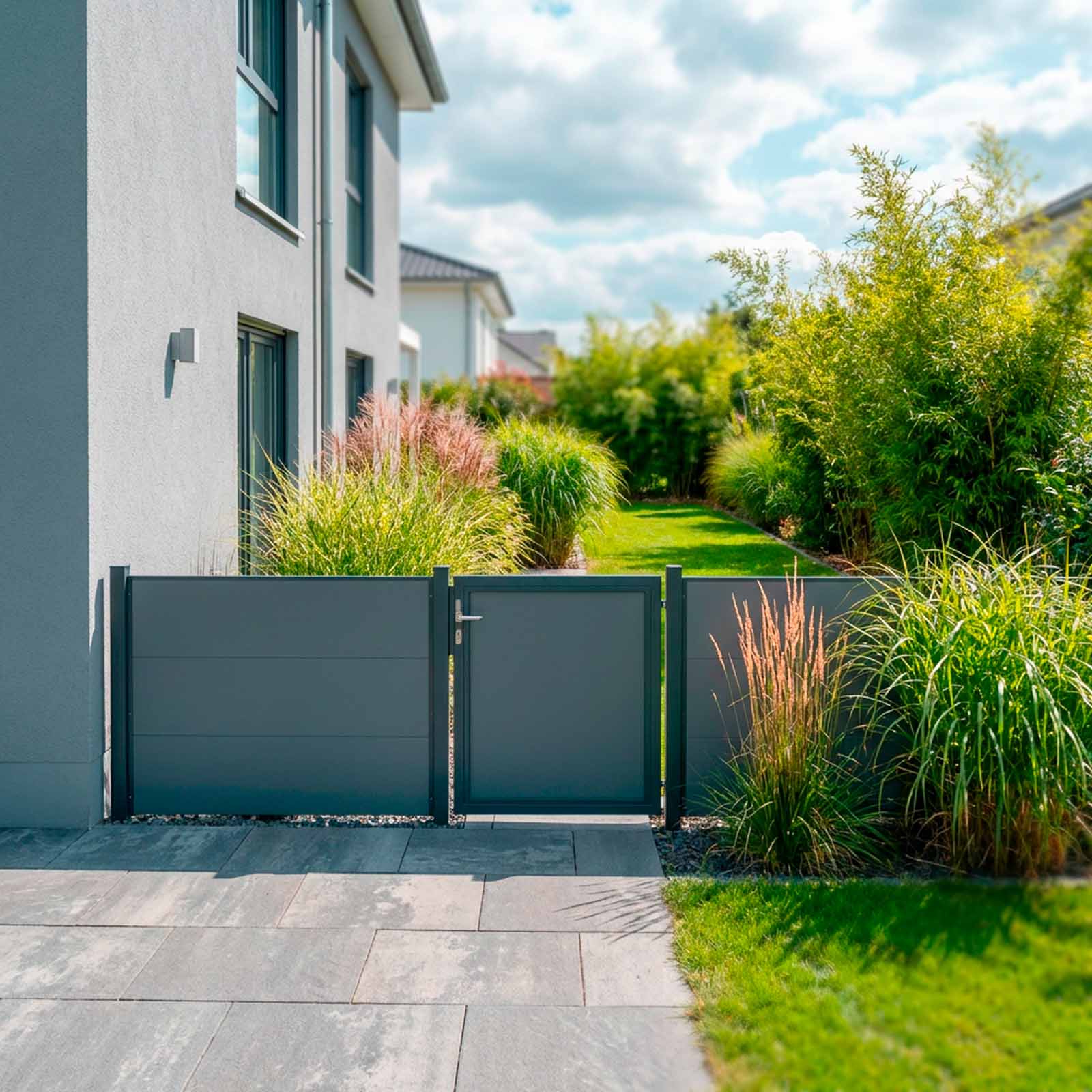 Durch moderne Zwischenelemente können Sie Ihrem Außenbereich Ihre individuelle Handschrift verleihen und eine einladende Atmosphäre schaffen. Durch gezielte Unterbrechungen lockern Sie besonders lange Zaunanlagen optisch auf oder können bestimmte Bereiche in Ihrem Garten hervorheben.