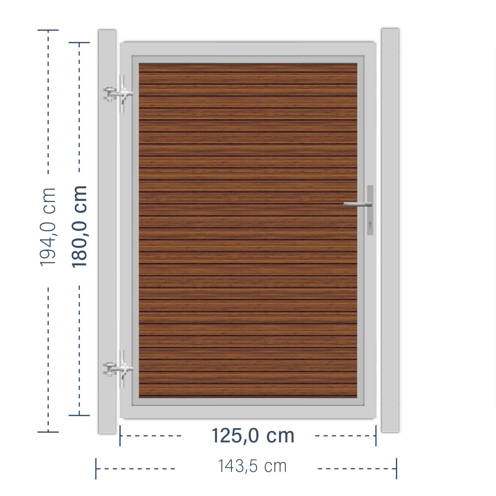 Das Tor wird inklusive Einsteckschloss und Beschlagsatz geliefert. Es ist ideal kombinierbar mit den Serien SYSTEM ALU XL, SYSTEM ALU PLUS und SYSTEM RHOMBUS.
