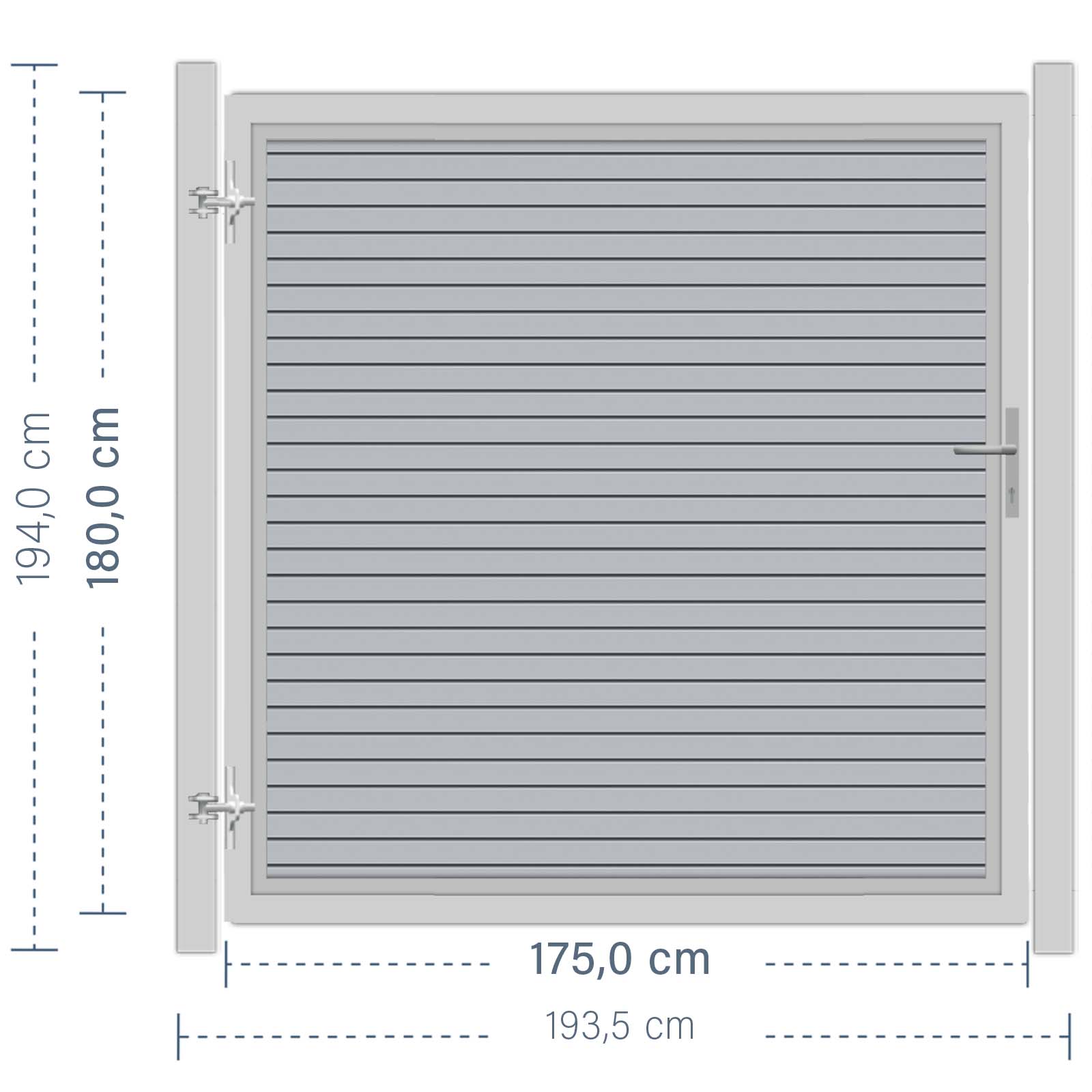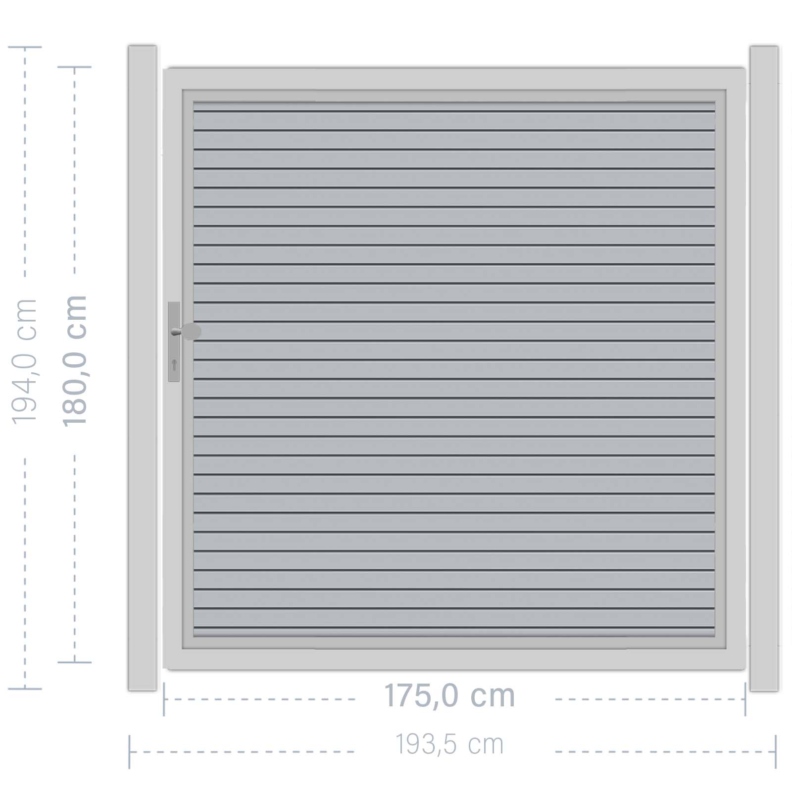 Das Tor wird inklusive Einsteckschloss und Beschlagsatz geliefert. Es ist ideal kombinierbar mit den Serien SYSTEM ALU XL, SYSTEM ALU PLUS und SYSTEM RHOMBUS.