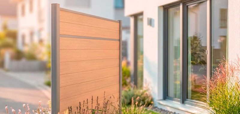 Gezeigt wird, wie der Sichtschutz SYSTEM WPC mit Steckpfosten aufgebaut wird.