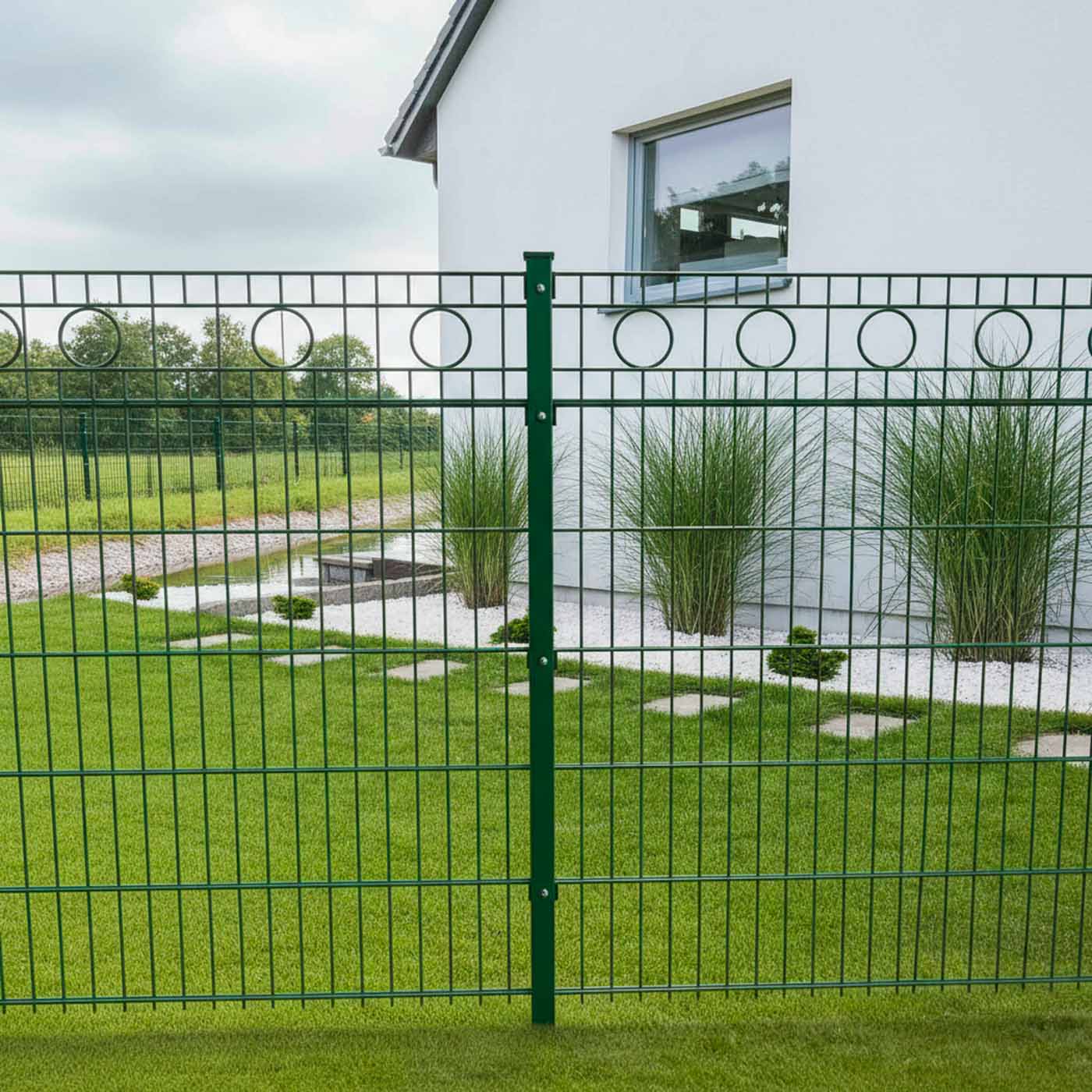 Unsere Schmuckzäune vereinen Funktionalität mit elegantem Design und setzen stilvolle Akzente in jedem Außenbereich. Wählen Sie aus den dekorativen Mustern Raute, Kreis und Bogen. Im Gegensatz zur klassischen Doppelstabmatte überzeugt der Schmuckzaun mit einer individuellen und ansprechenden Optik, ohne dabei auf Stabilität und Sicherheit zu verzichten. Hochwertige Materialien und eine präzise Verarbeitung garantieren Langlebigkeit sowie Witterungsbeständigkeit