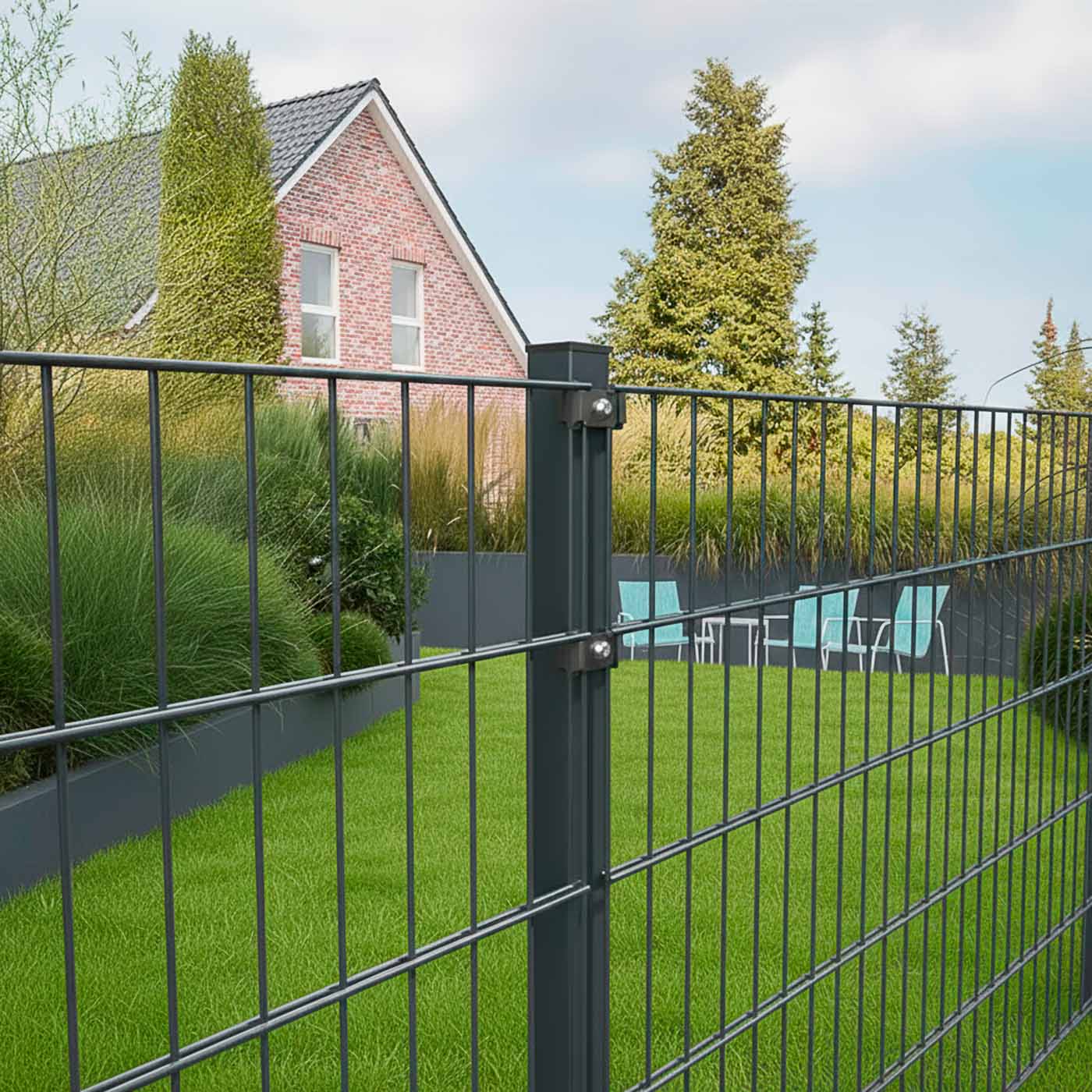 Doppelstabmattenzaun Komplettset 6/5/6 in RAL 7016, Anthrazit