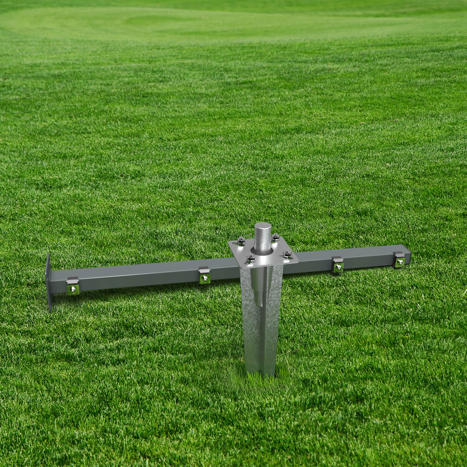 Montagedorn zum Einschlagen der Erdspieße ins Erdreich. mehr